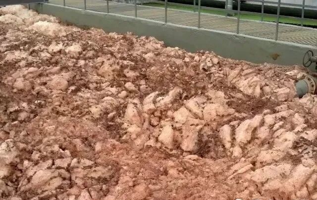 2.黑色而且堆积过度的液面浮渣:污泥严重缺氧或厌氧。
